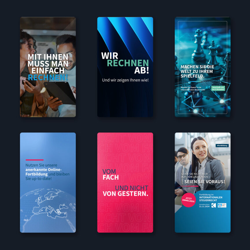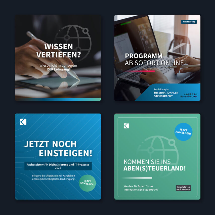 As part of the ongoing social media support for KNOLL – a leading German institute for tax law exam preparation – I was responsible for the design of visual assets for both organic content and paid campaigns. This included creating stills and motion graphics for Instagram and LinkedIn, aligned with each campaign’s goals and optimized for performance.