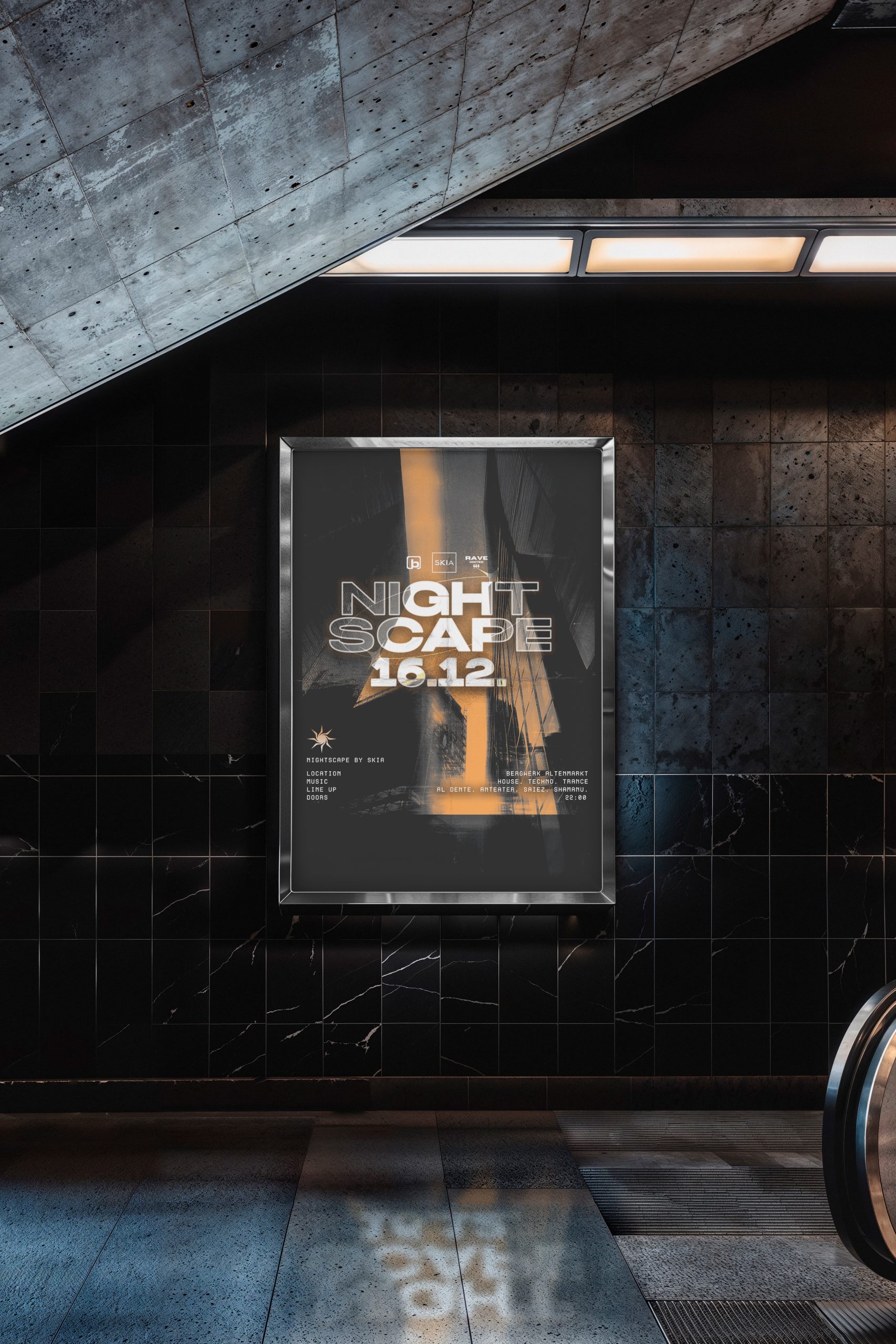 For the Techno collective SKIA, I designed the full event artwork and visual identity for their Nightscape event at Bergwerk Altenmarkt.